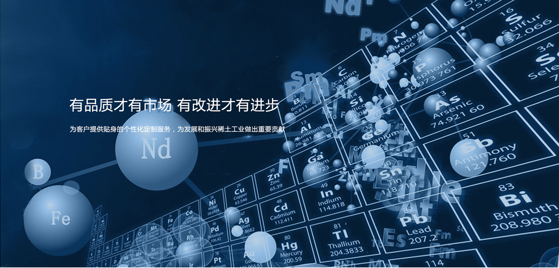 包头市千亿qy88国际官网入口材料有限责任公司成立于2008年,坐落于以稀土冠名的国家级高新区———包头稀土高新区,占地面积50亩。是一家集研发、生产、销售为一体的专业稀土永磁材料高新技术企业,主营稀土金属、高性能烧结钕铁硼和粘结钕铁硼。建有稀土金属冶炼、毛坯生产、渗透工艺、成品加工、表面处理、稀土废料回收等全过程生产线,公司年产量6000吨高性能稀土永磁材料,目前已批量生产N56、56M、56H、54SH、54UH、48EH、42TH等牌号系列超高性能铁硼永磁材料。